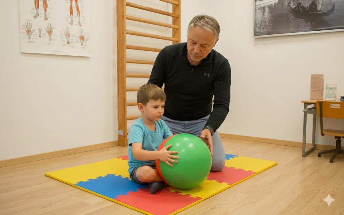 Kinderfysiotherapie is fysiotherapie speciaal voor baby's, peuters, kinderen en tieners. Kinderfysiotherapeuten hebben extra training gevolgd om te weten hoe kinderen zich ontwikkelen en groeien. Ze helpen kinderen die moeite hebben met bewegen, sporten of hun normale ontwikkeling.